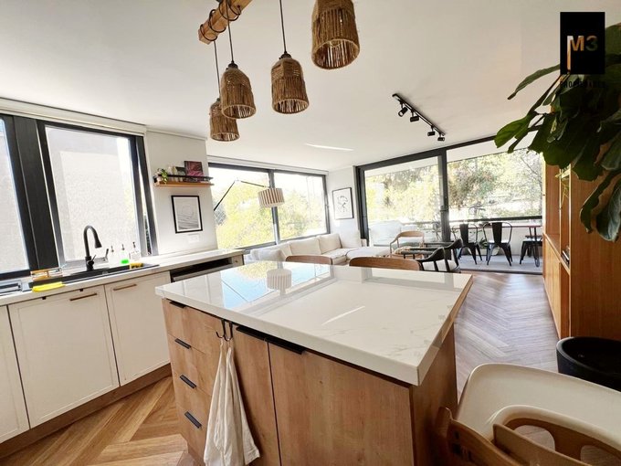- Cocina integrada con cubierta de cuarzo y abundante almacenamiento; logia separada.