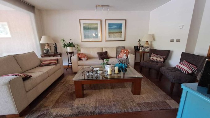 Con 145 metros construidos, distribuidos de la siguiente forma: amplia cocina equipada y amoblada con comedor de diario, amplia loggia cerrada. Baño de visitas. Sala de estar a la entrada de los dormitorios, que podría ser un cuarto dormitorio, más 2 dormitorios amplios, con un segundo baño completo. Dormitorio principal amplio y luminoso con terraza aparte, walking closet y baño en suite con ventana. Living comedor separados, ambos con salida a amplia terraza.