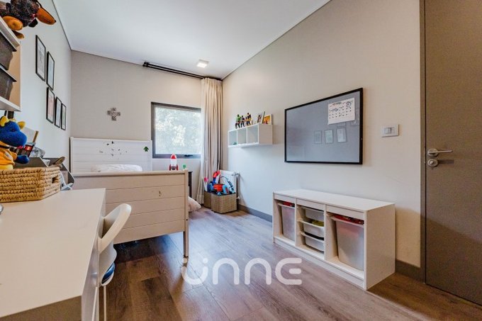 Amplios dos dormitorios secundarios, cada uno con su closet, sala de estar o sala de juego, cuarto de logia, baño con tina.