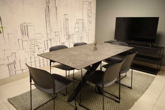 - Sala de trabajo o para reuniones presenciales o virtuales, otra sala más grande para co-work.