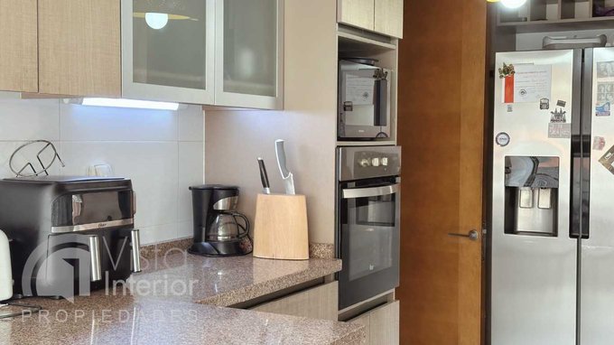 Disfruta de una hermosa terraza de 18 m, conectada al living y al comedor mediante ventanales plegables de termopanel, que te permiten integrar estos espacios en un solo gran ambiente, ideal para compartir momentos con familiares y amigos mientras contemplas una espectacular vista hacia el norte.