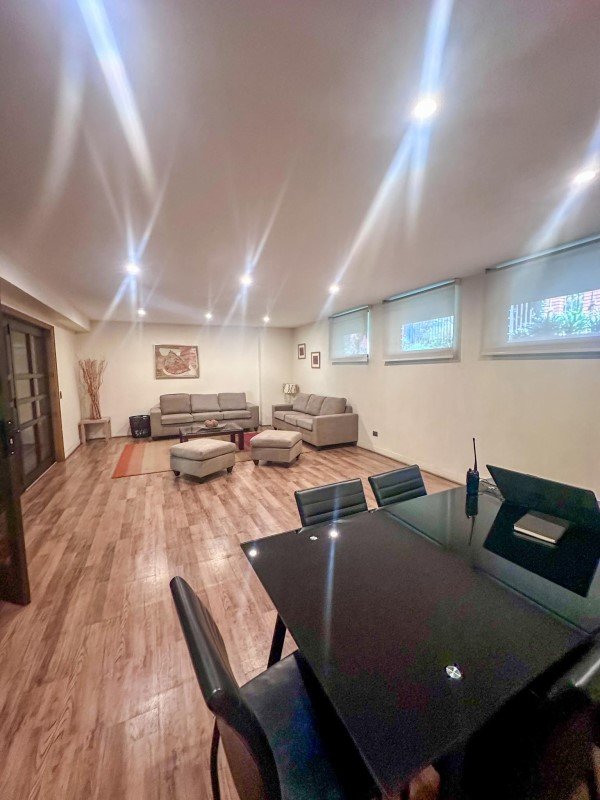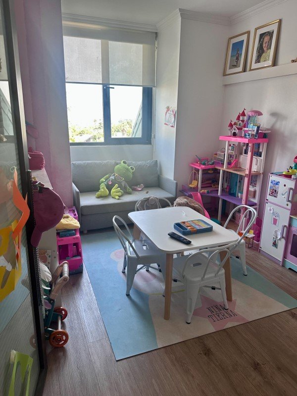 Cómodo espacio, separado por mampara de vidrio, que puede ser utilizado como oficina, sala de estar o de juego para niños.