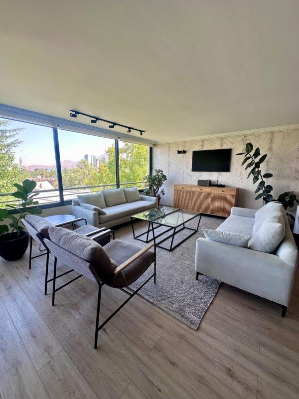 Ubicado en un tranquilo y seguro barrio residencial de Vitacura -y cercano a avenidas y autopistas, servicios de comercio, clínica, mall y colegios- se encuentra este espectacular departamento de 3 pisos con 3 habitaciones + 3 baños + baño vista + sala de estar + servicio completo + amplia logia + ático + 4 estacionamientos (2 tándem) + 1bodega a UF 17.500.