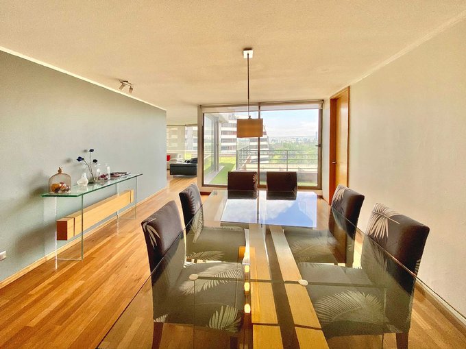 Departamento único en su tipo con una terraza abierta de 132 m2 y otra terraza de 64 m2 cerrada, ambas de "uso y goce exclusivo" del departamento. Además tiene terrazas propias del departamento de 35 m2 aproximados, incluidas en el Rol de Avalúo.