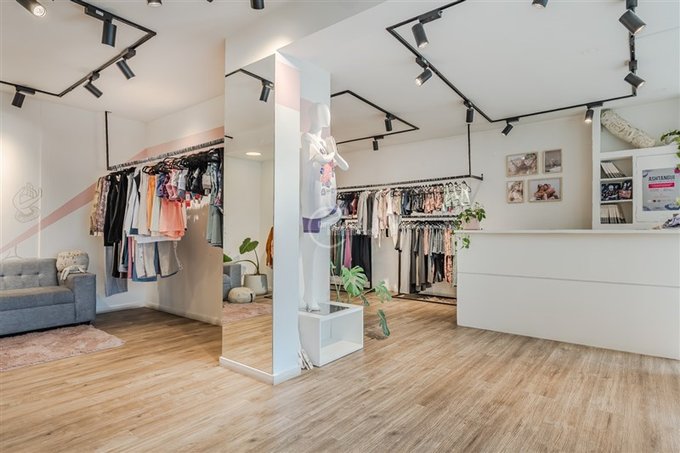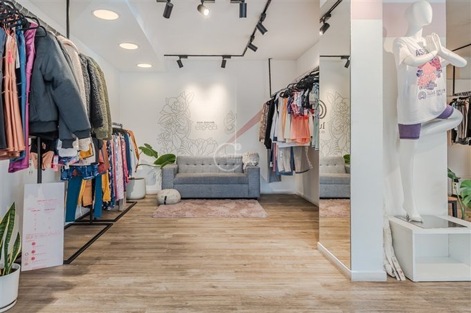 Amplia recepción, grandes espacios de tienda, 2 probadores, gran sala de usos múltiples, 2 baños, cocina y bodega.