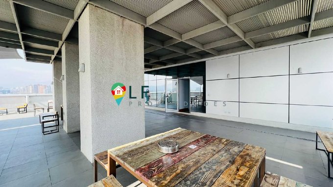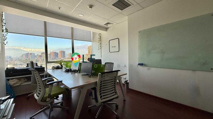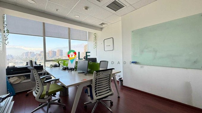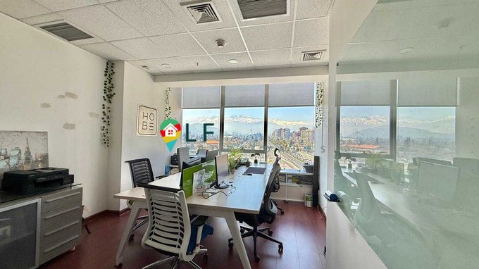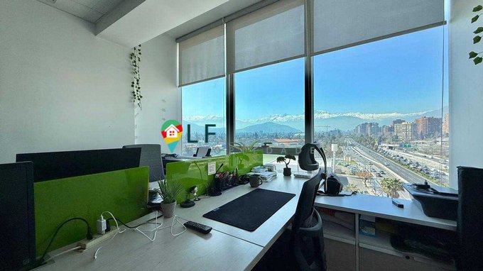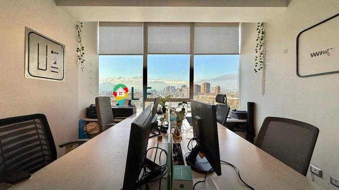 Funcional oficina con una superficie útil de 24 mt2, planta libre de doble altura con una gran vista a la cordillera por ventanal de tope a tope.