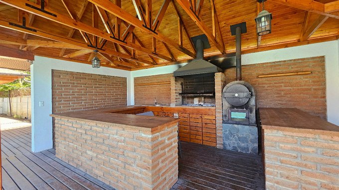 Amplio Quincho de 11 m2 regularizados con mesón y muebles donde integra un hermoso Horno de ladrillo y fierro.