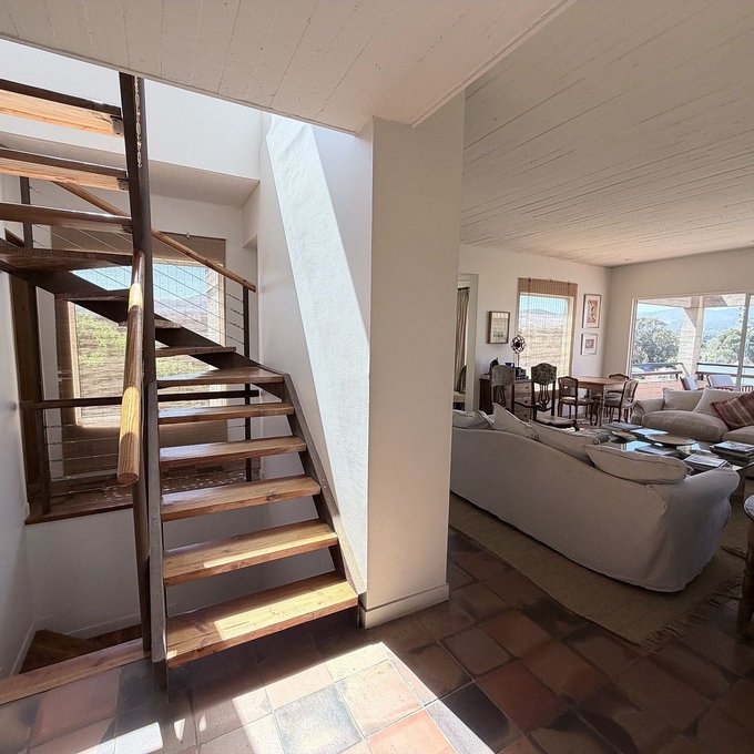 La casa cuenta con una distribución cómoda y versátil: ofrece tres dormitorios en suite (cada uno con su baño) y dos dormitorios adicionales que comparten un baño completo. El área social incluye una acogedora sala de estar y un amplio living-comedor con vistas al mar, ideales para compartir en familia.
